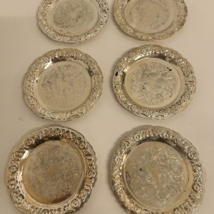 Set of 6 Vintage Silver Plated Coasters Ornate Floral Design