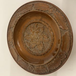 Vintage Hand Carved Wooden Bowl Plate Floral Folk Art Decorative