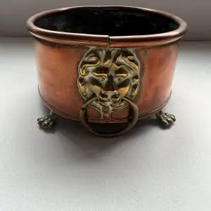 Vintage Copper Jardiniere Lion Mask Handles Planter Bowl Paw Feet