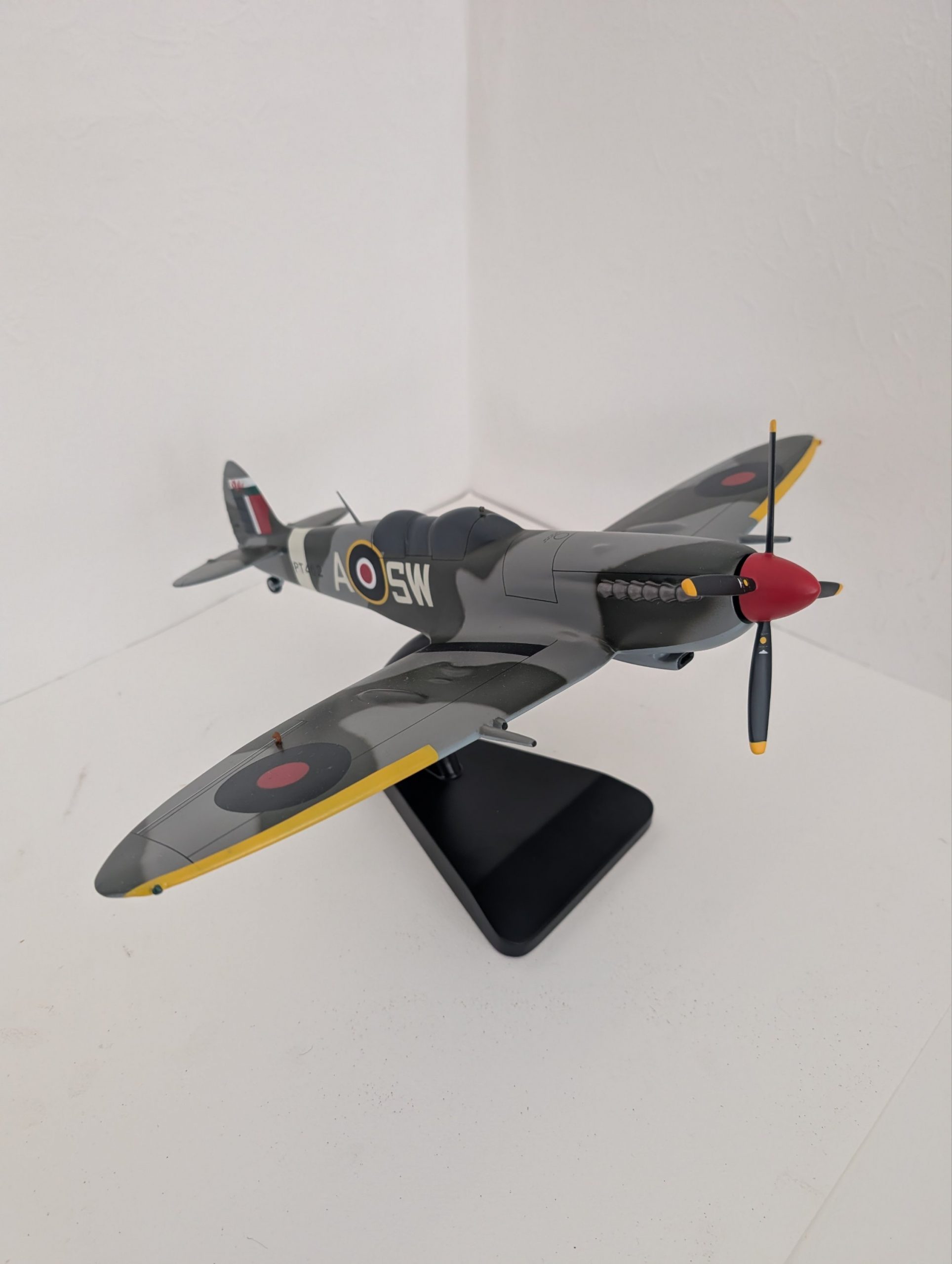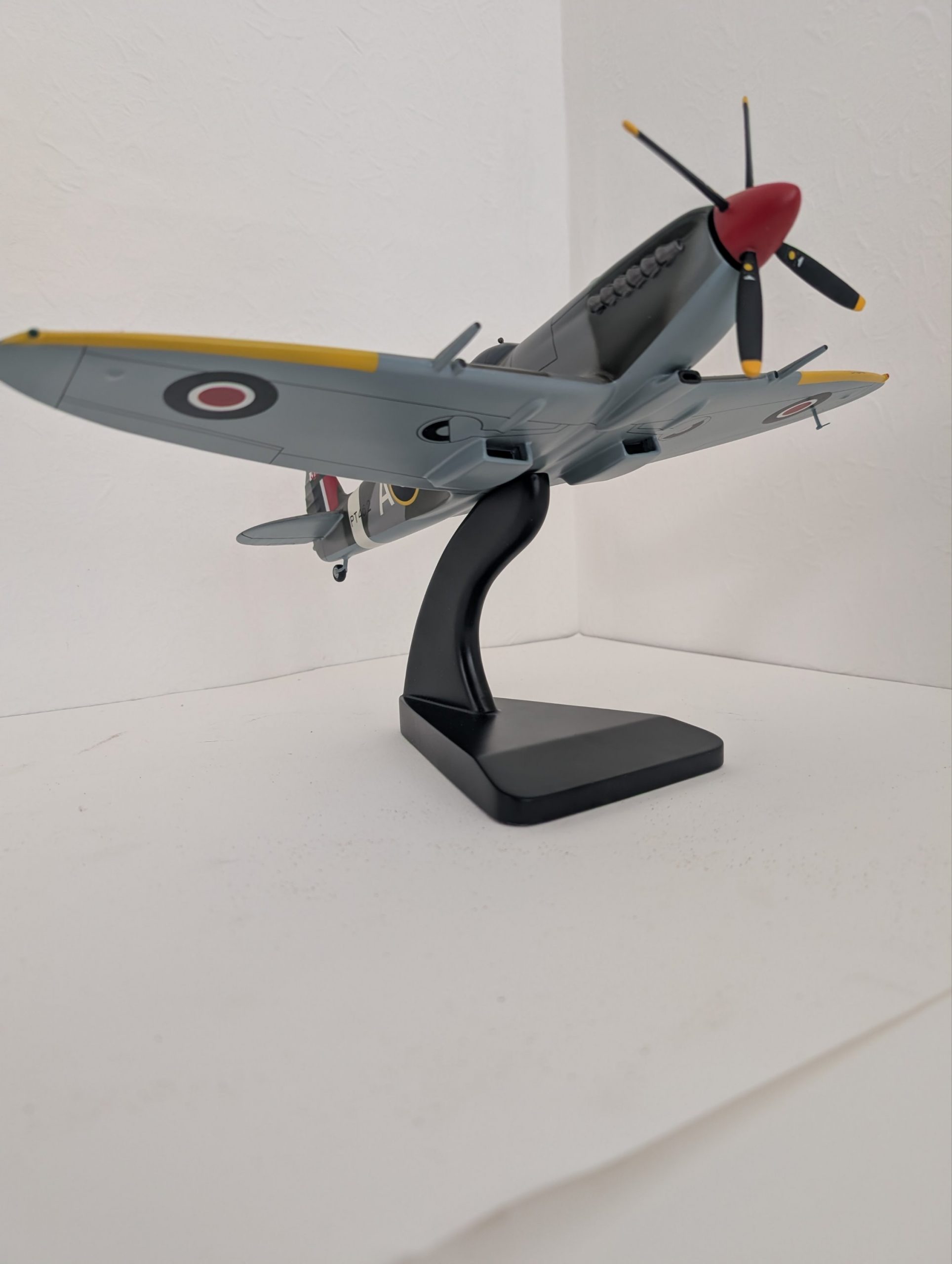 Spitfire model, display stand, Bravo Delta tag.