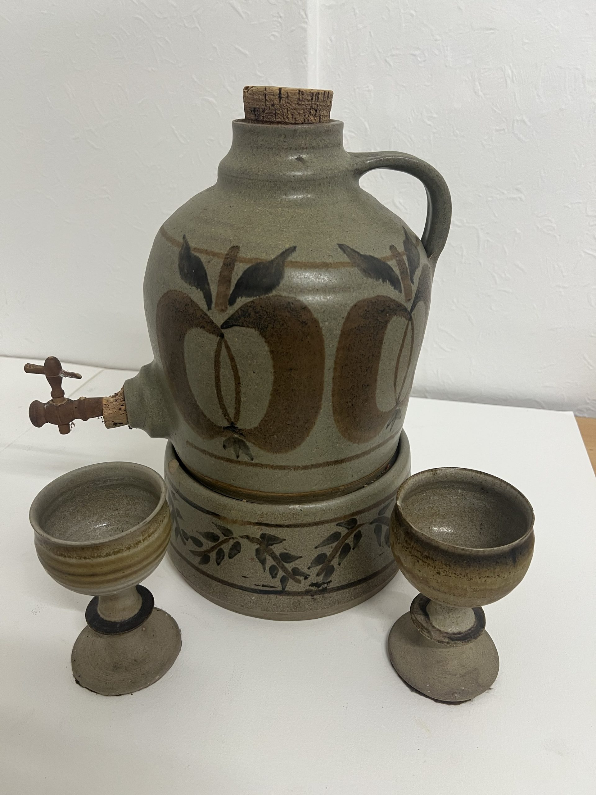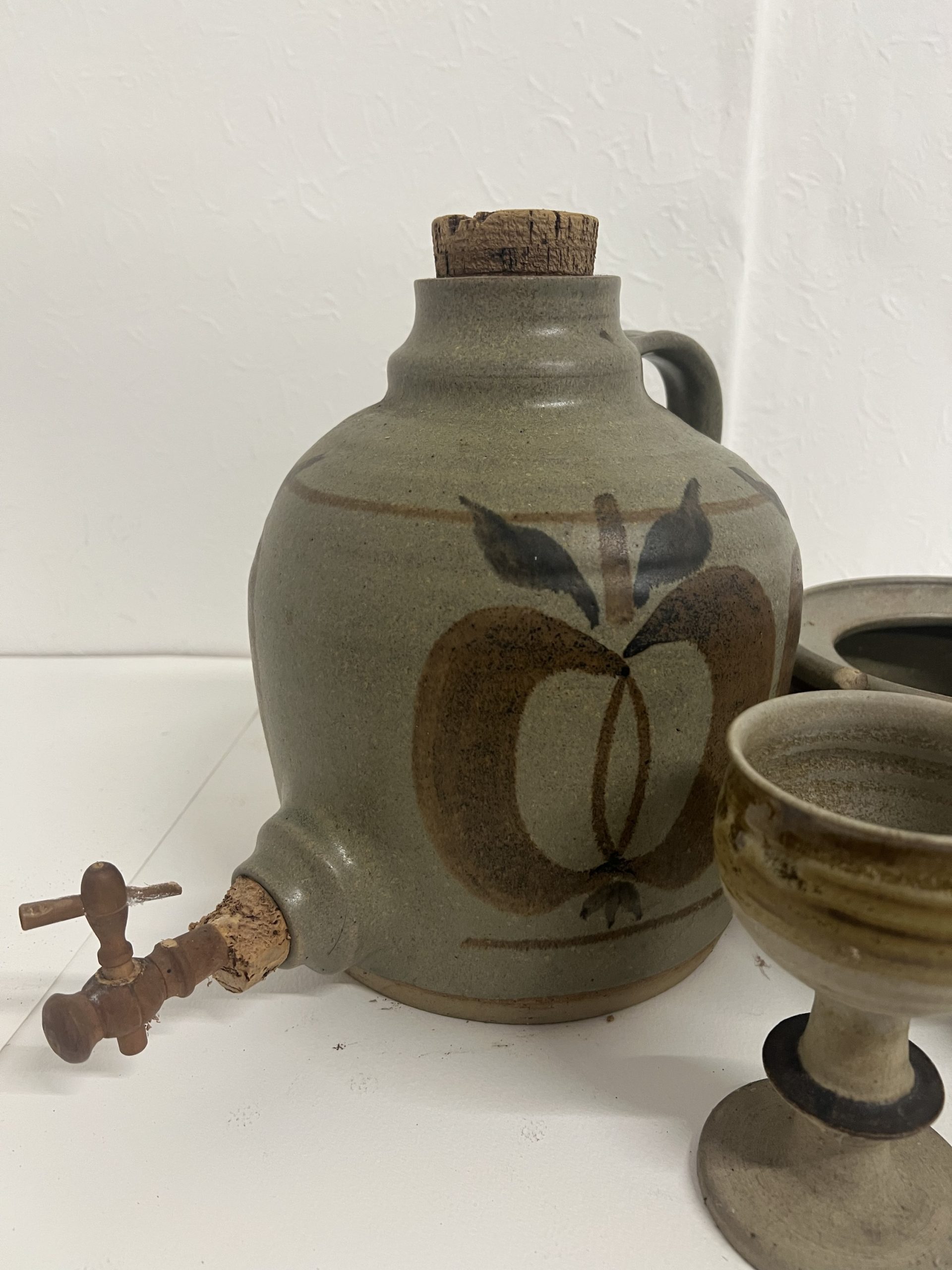 Vintage Stoneware Drinks Dispenser Set with Tap & Cups